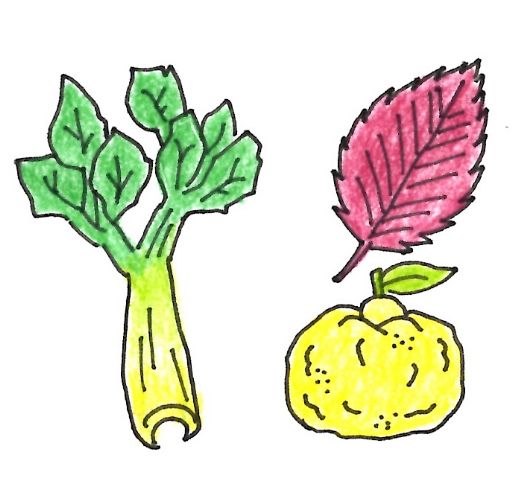 三つ葉、セロリ、春菊、オレンジの皮、菊の花、しそ、ゆず、ジャスミンなどが