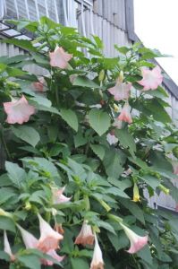 学名はダチュラで、花の形からエンゼルトランペットとも言われます。
