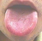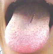 初めの人は、舌が大きく、むくんだ感じで、歯形があります。
